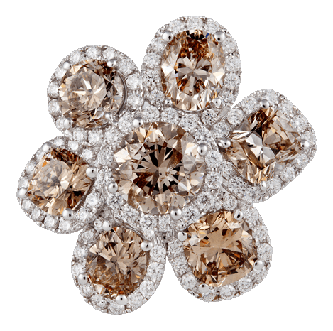 A rare collection of natural brown coloured diamonds set in a stunning ring suite, designed for the unconventional.